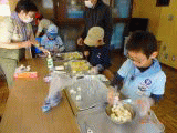 モザイクキャンドル作り、自己紹介ゲーム、紙芝居、こぶたぬきつねこカードなどをして遊びました。