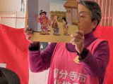 豆まきの紙芝居を見たあと、お菓子を撒く人になったりお菓子を拾う人になったりしました。