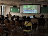 今日は福祉センターで夏キャンプの報告会を行いました。