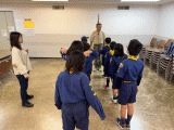 今日はボーイスカウト活動の創立者であるベーデン=パウエル卿(BP)の誕生日(2月22日)を記念してBP祭を行いました。ベーデン=パウエル卿の肖像画に向かって、みんなでカブ隊のやくそくとさだめを唱えました。アメリカに留学している先輩スカウトの話をウェブで聞いて、質問をしました。